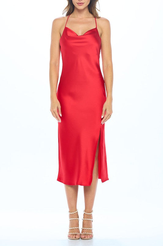 Satin Bias Slip Dress with Slit