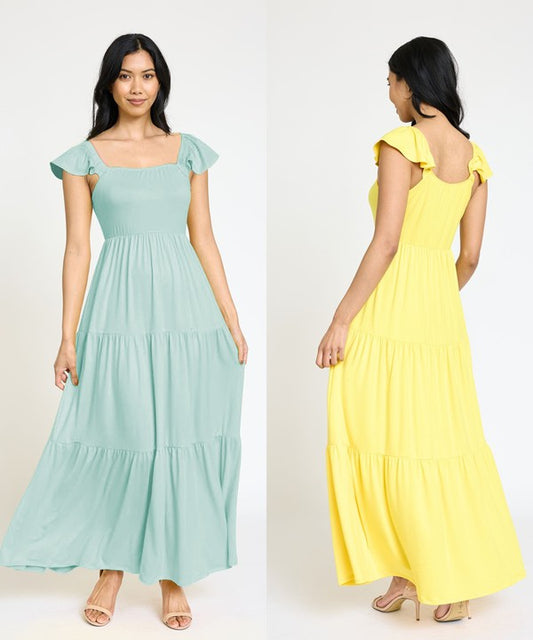 Flutter Sleeve Flowy Tiered Sundress (6 Color Options)