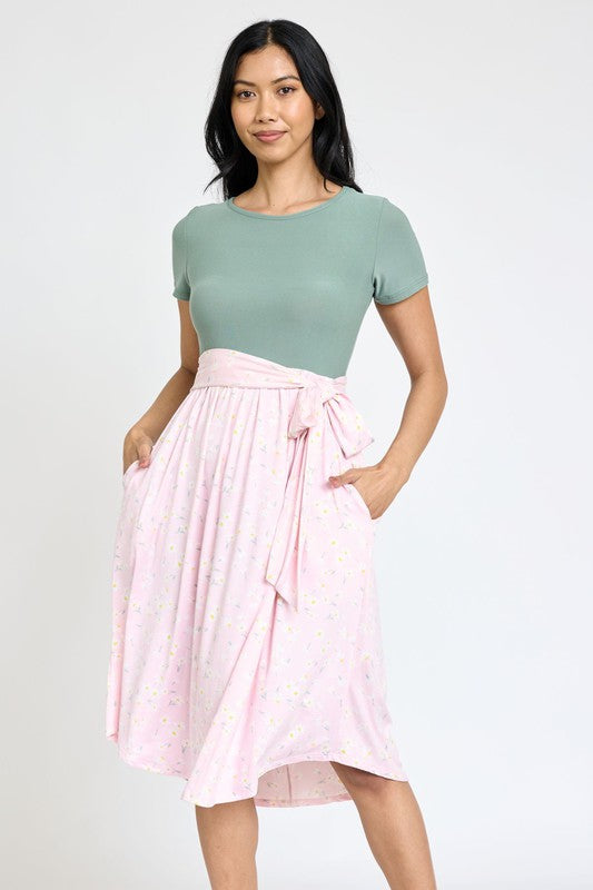 Short Sleeve Floral Midi Dress (2 Color Options)
