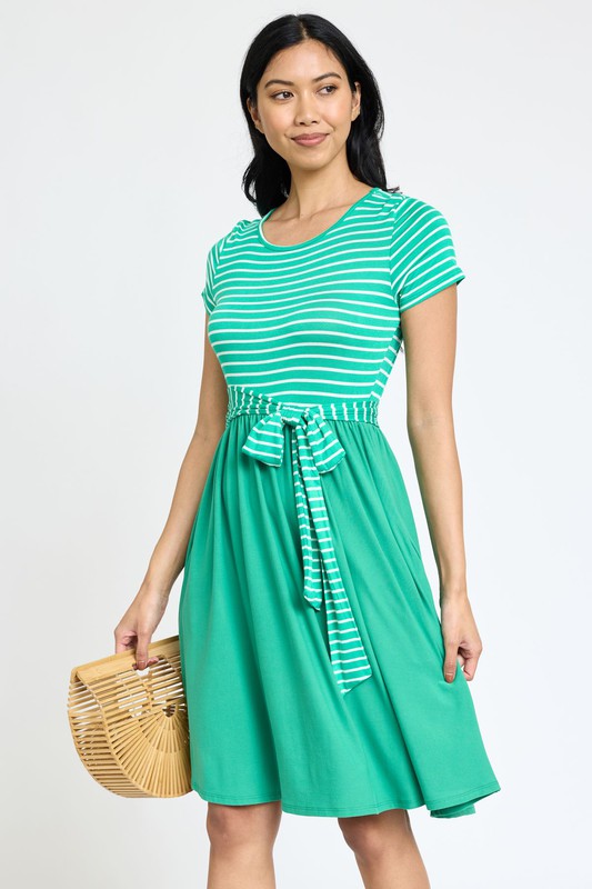 Short Sleeve Stripe Sash Dress (4 Color Options)