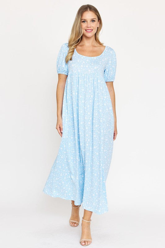 Empire Waist Floral Puff Sleeve Dress (3 Color Options)