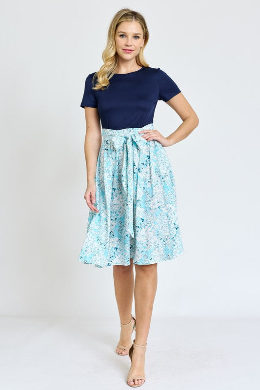 Short Sleeve Floral Sash Midi Dress (3 Color Options)