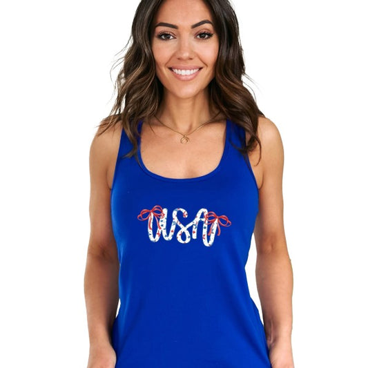 USA Cursive Coquette Racerback Tank
