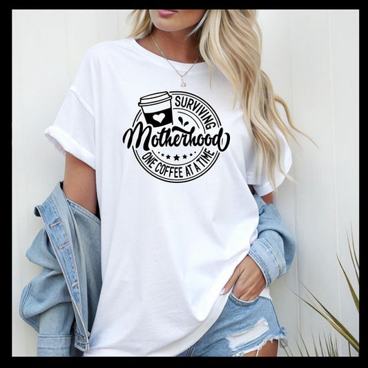 Surviving Motherhood One Coffee at a Time Graphic (5 Color Options)