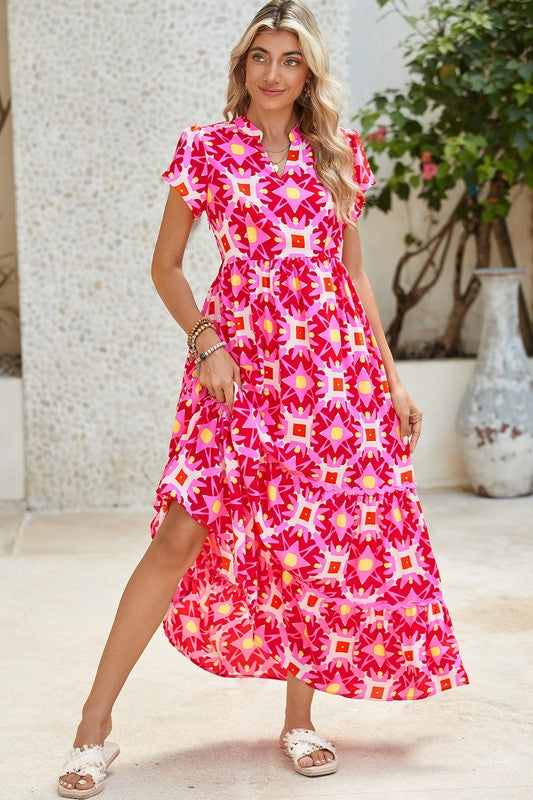 Women Print Sleeveless Ruffle Tiered Maxi Dress