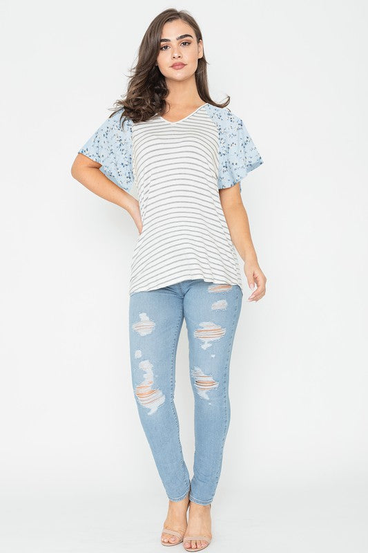 Plus stripe sleeve floral top/tunic (3 Colors options)