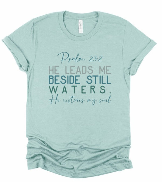 Psalm 23 2 He Leads Me Graphic Tee (6 Color Options)
