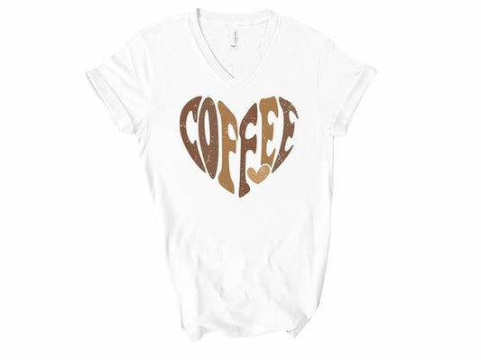 V-Neck Coffee Heart Graphic Tee (2 Color Options)