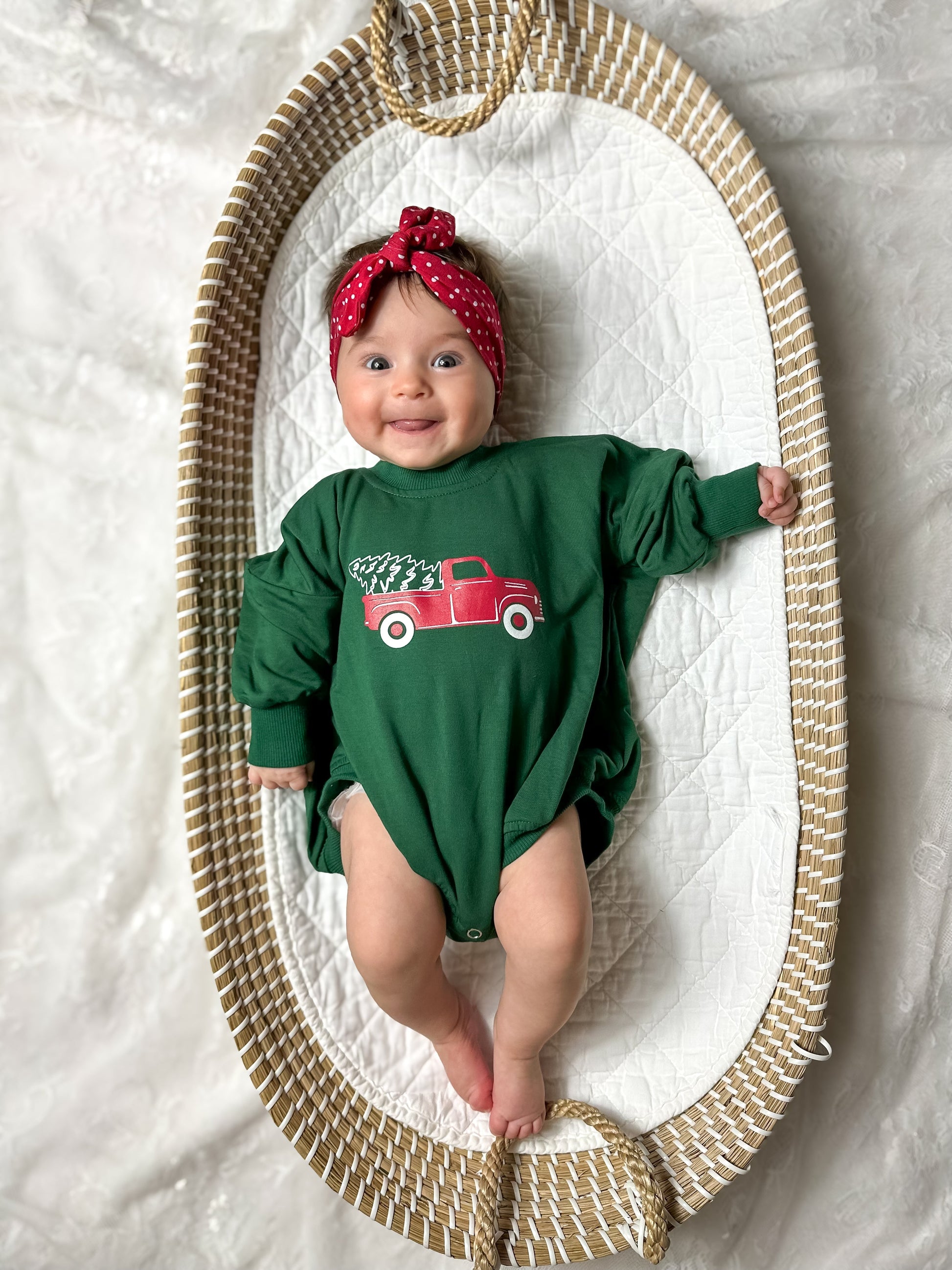 Christmas Tree Truck Bamboo Sweatshirt Romper