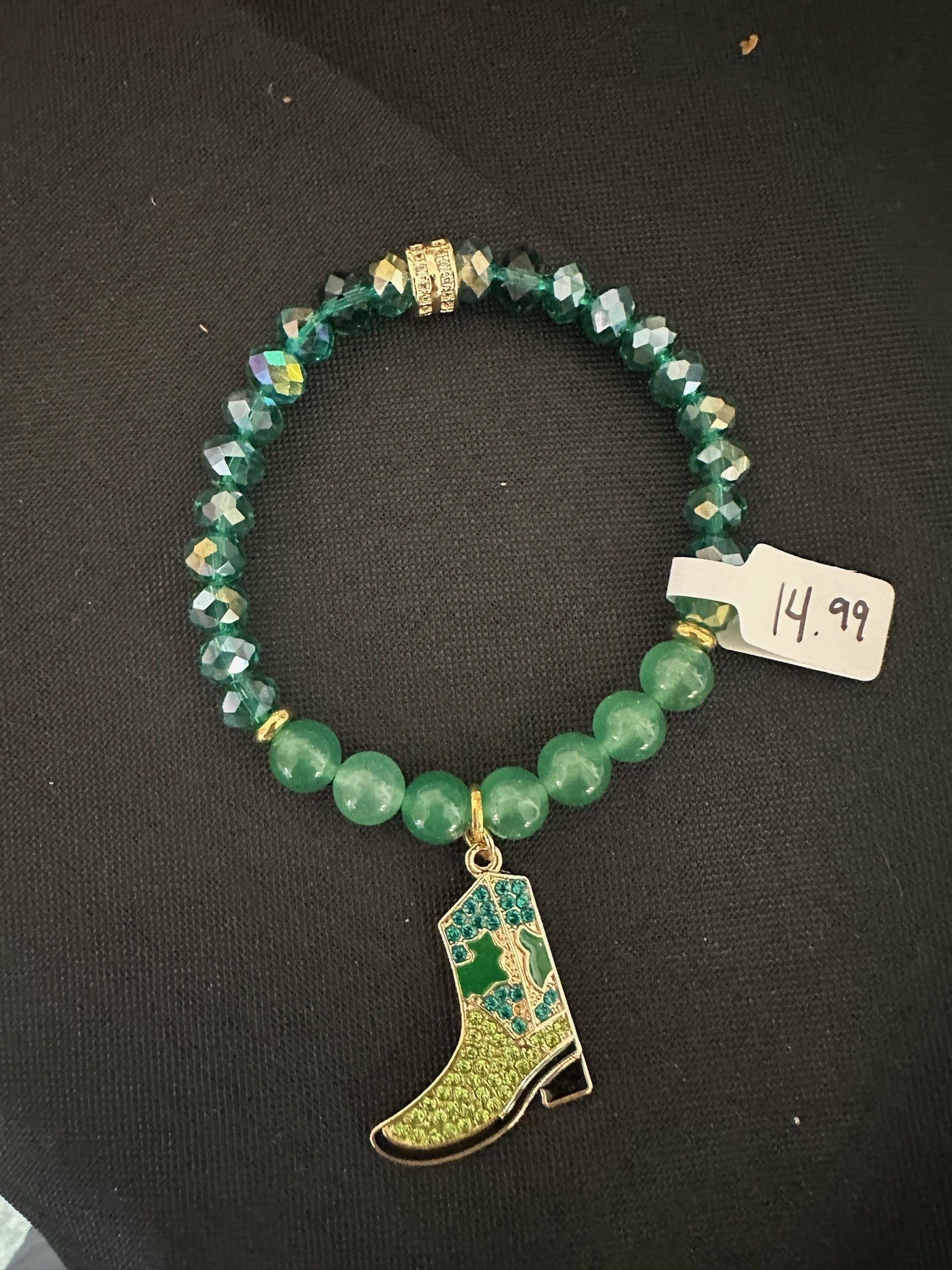 Add a touch of effortless charm to your everyday style with this beautifully crafted glass beaded bracelet. Designed with smooth, reflective beads and finished with a delicate boot charm, this piece blends simplicity with personality. Lightweight, versatile, and perfect for layering. It is the ideal accessory for anyone who loves sparkle with a hint of character.